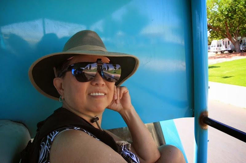 We all lifted off of our seats many times and were very thankful for the padding. Each of the trucks seems to take their own path down the wide wash.